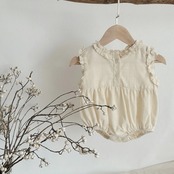 コットンリネンの軽やかな素材が、おしゃれなロンパースが登場しました。