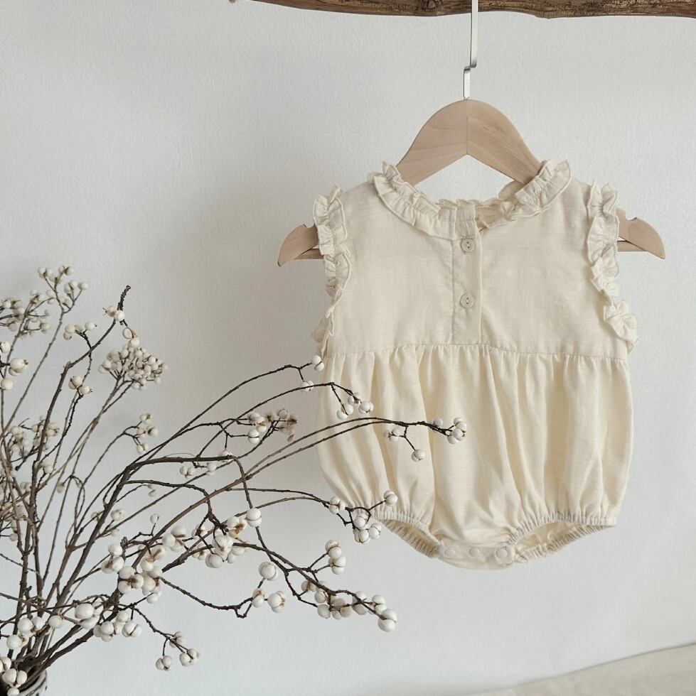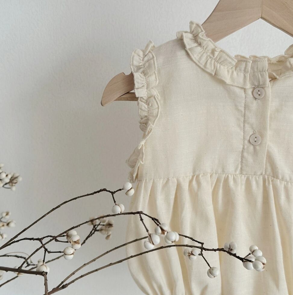【予約】【66-90】コットンリネン マシュマロ ロンパース /pp
