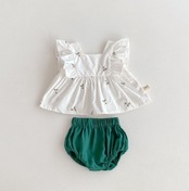 【予約】【66-100】embroidery flower & green bloomers set up