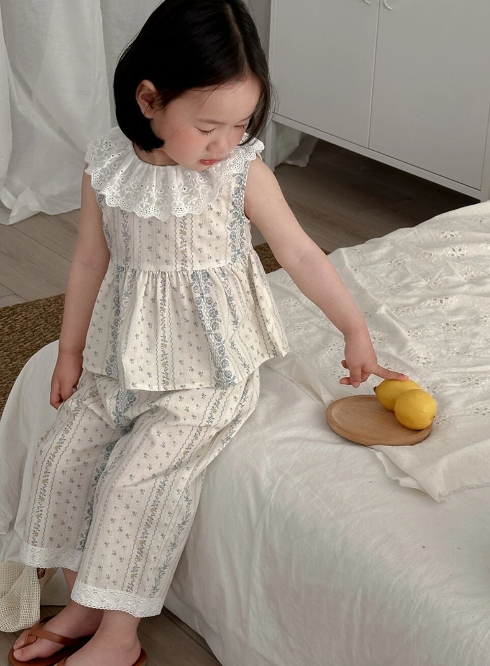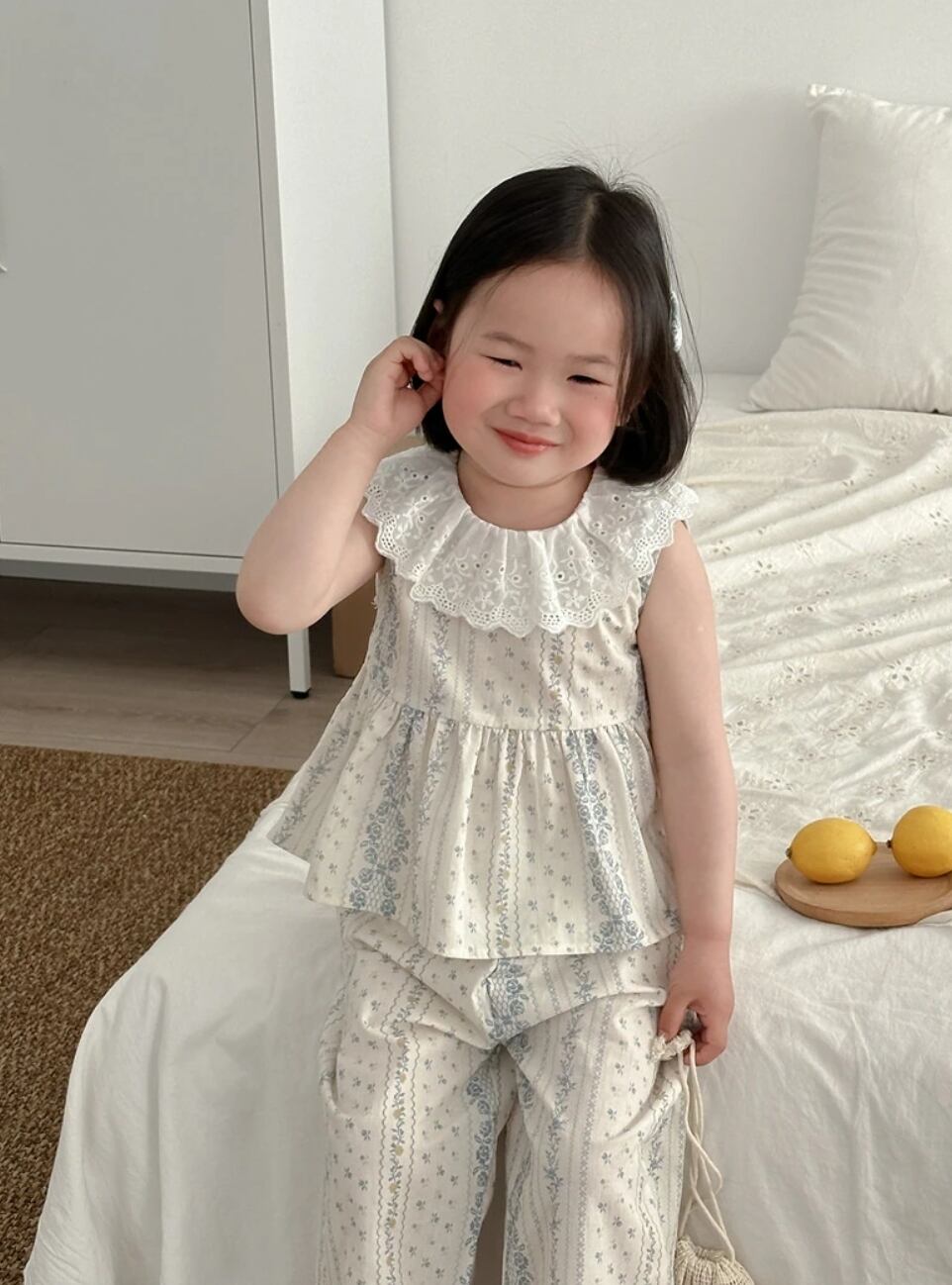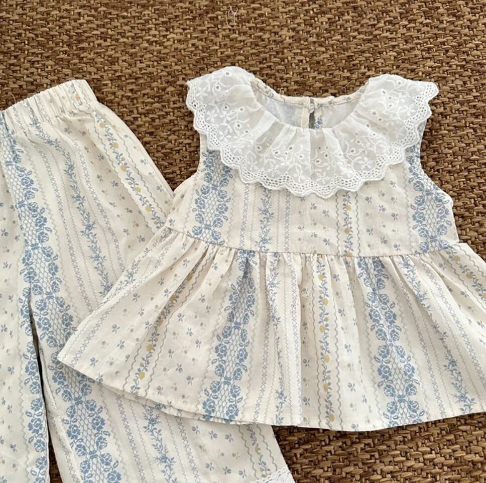 2024夏服新作女の子レース襟ノースリーブ上下セット