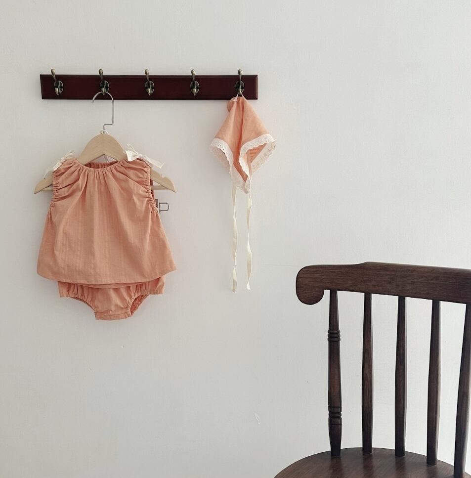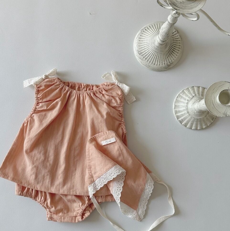 ちゃんのレースリボンノースリーブトップスショートパンツ