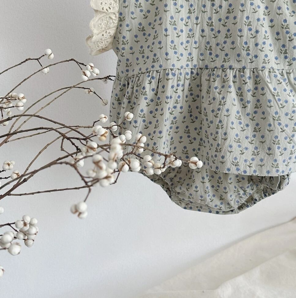 落ち着いたブルーグリーンの花柄がおしゃれな