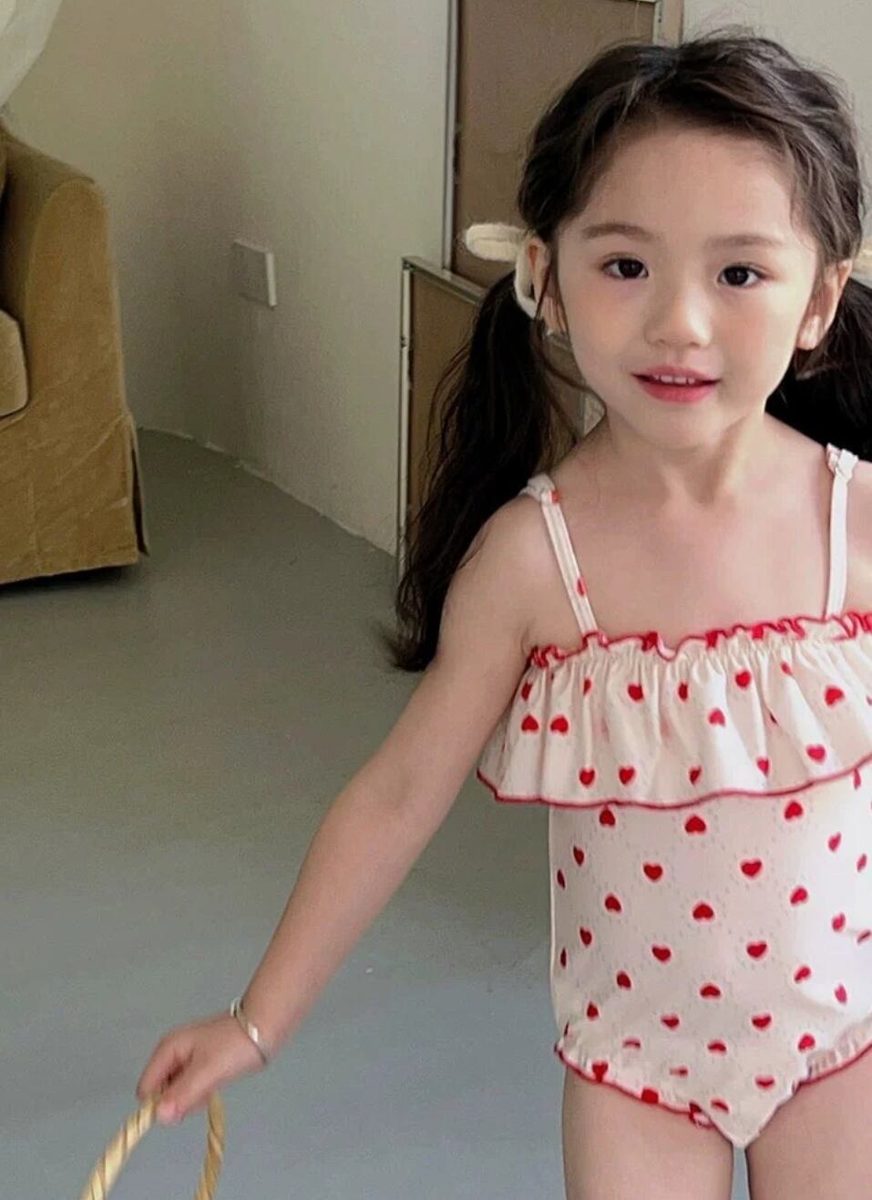 【予約】【80-130】2color ハート&ストロベリー フリル ワンピース スイムウェア 水着