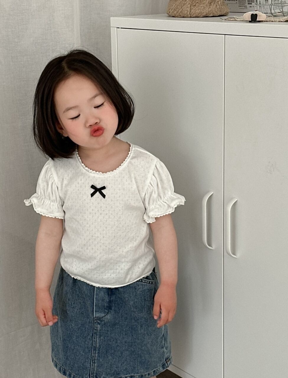 #くま #セットアップ #カットソー #くまさん #tシャツ 120 130 140夏の新作韓国版子供レース透かし