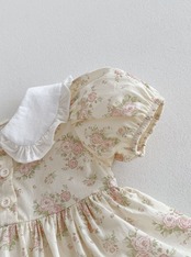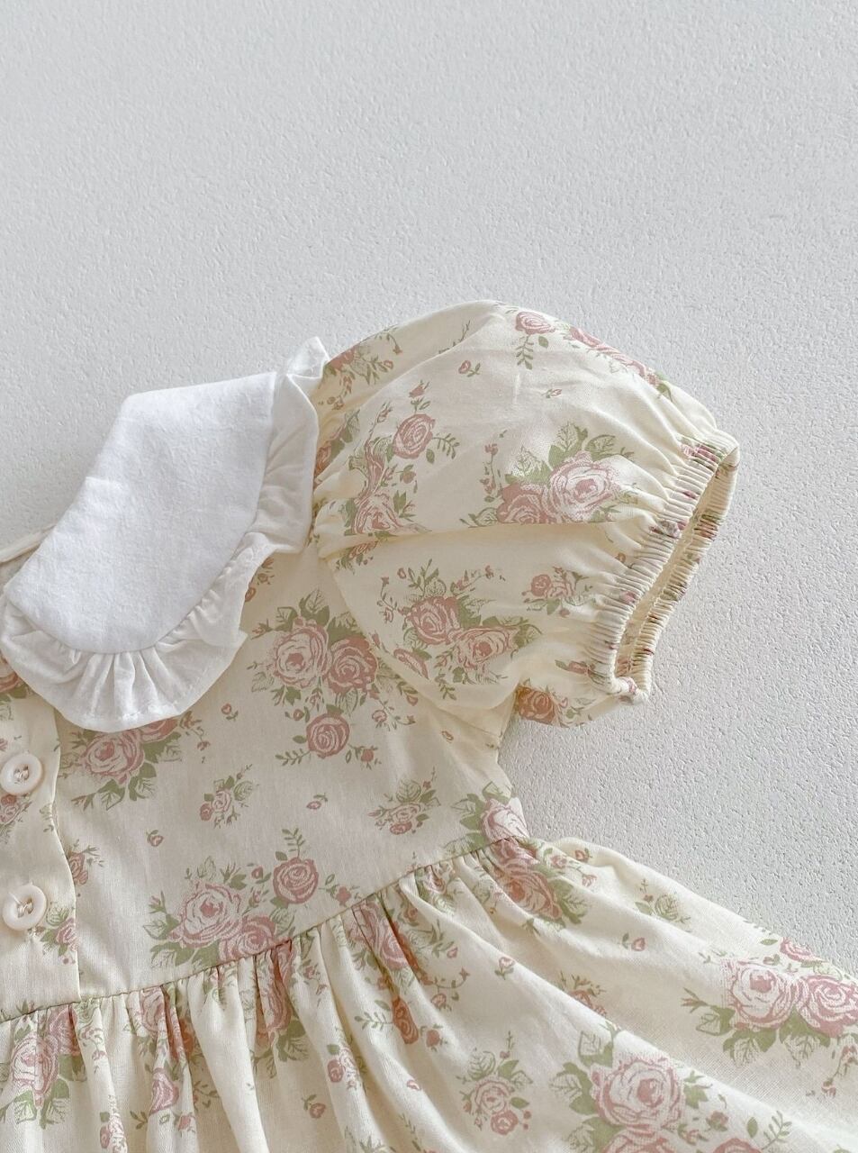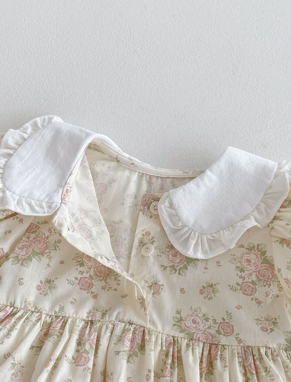 可愛らしいレース襟とローズ柄のコットンロンパース♡