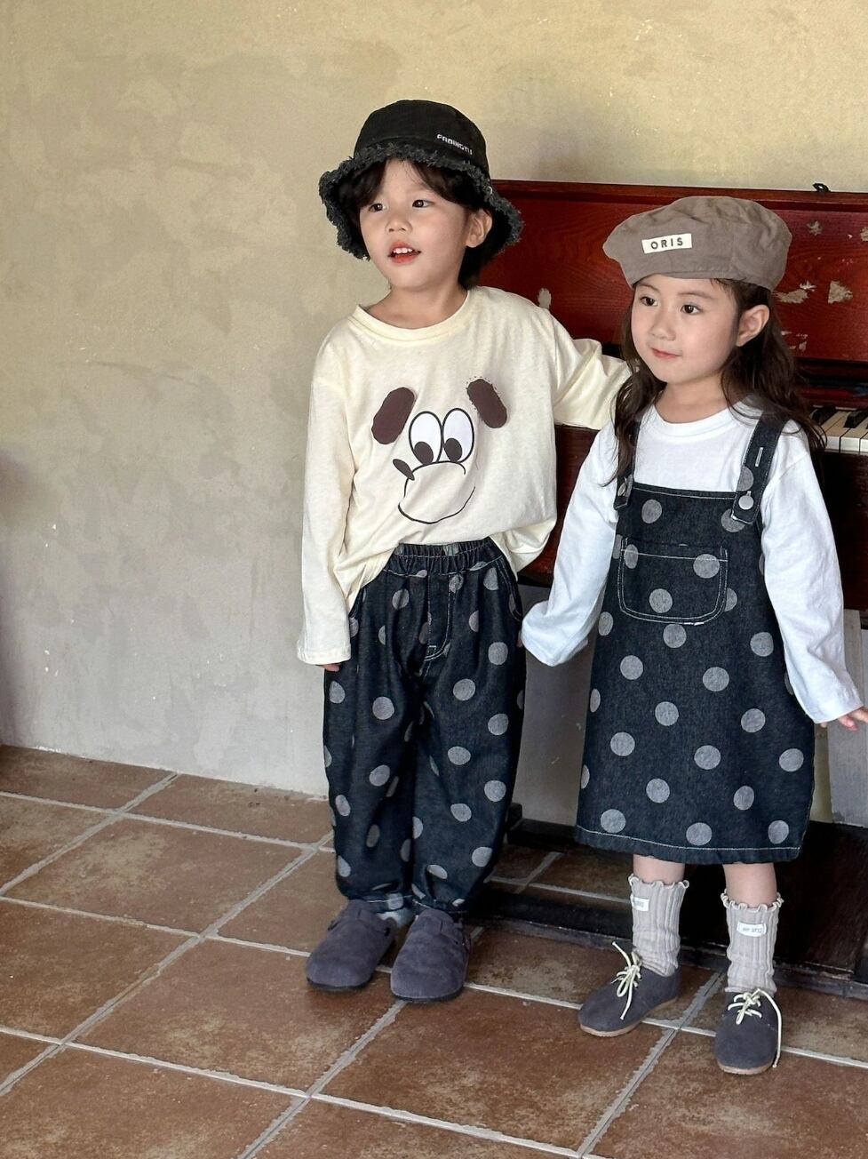 【予約】 リンクコーデ【80-150】 おおきなドット パンツ & ジャンパースカート