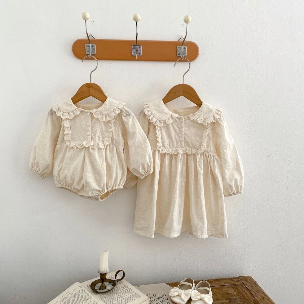 【予約】リンクコーデ 【66-90】embroidery antique lace rompers /pp