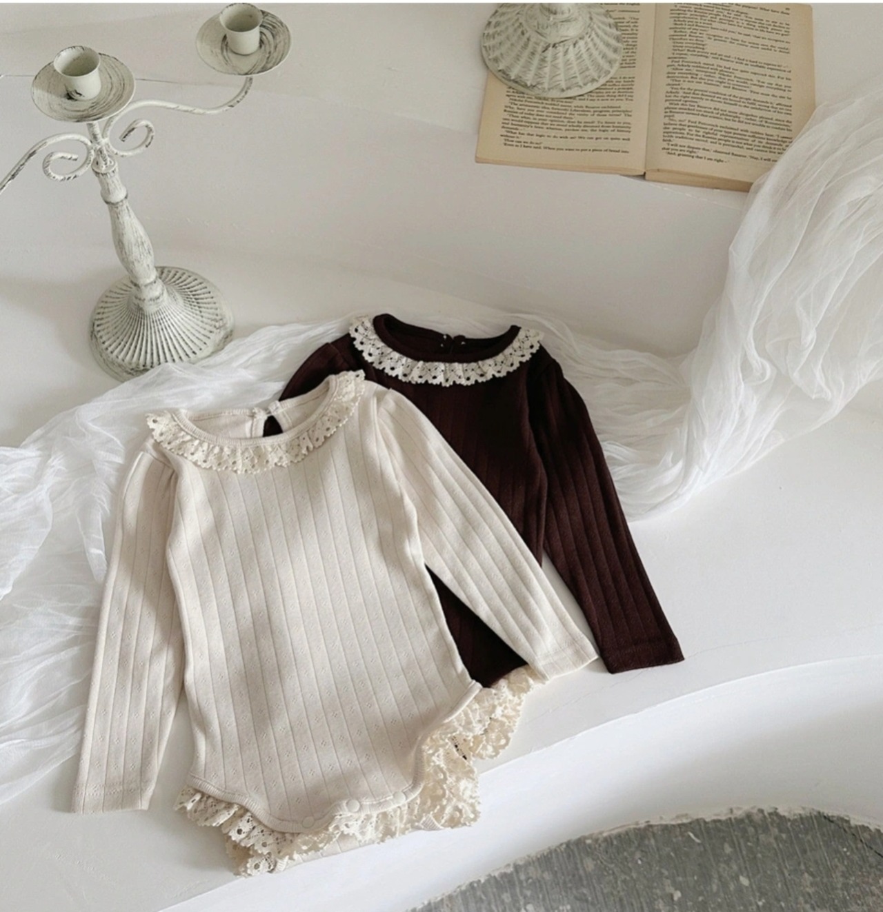 レースラウンドネック透かし長袖ジャンプスーツ 女の子