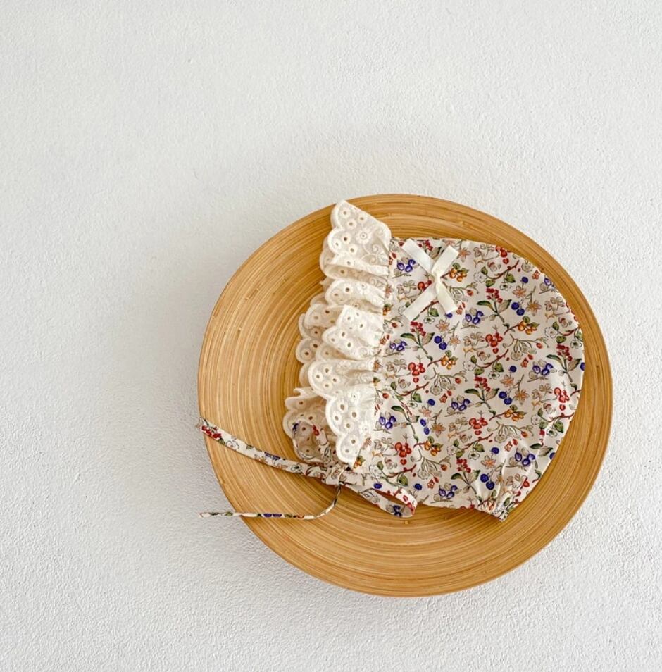 【予約】【66-90】 berry&flower bonnet & rompers pp