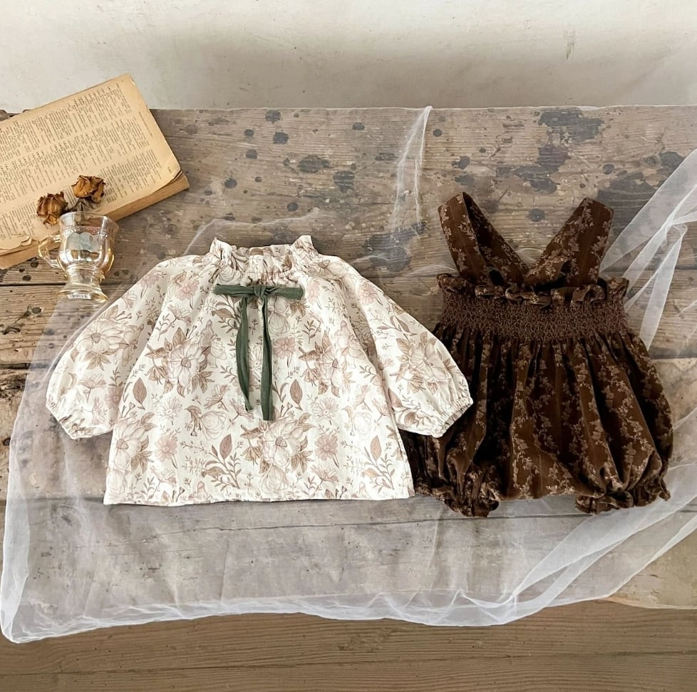コーデュロイ花柄サロペット