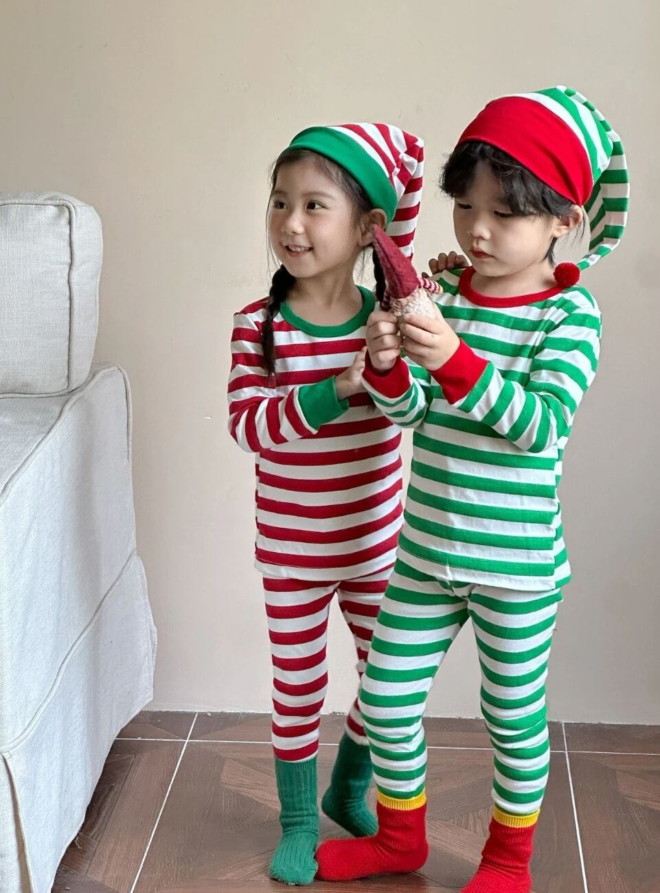クリスマスシーズンにぴったりなボーダーセットアップが登場!おしゃれで可愛いリンクコーデが叶うアイテムです♡柔らかく伸縮性のある素材で、快適な着心地を実現。特別な日の思い出にふさわしい、見逃せない一着です♪
