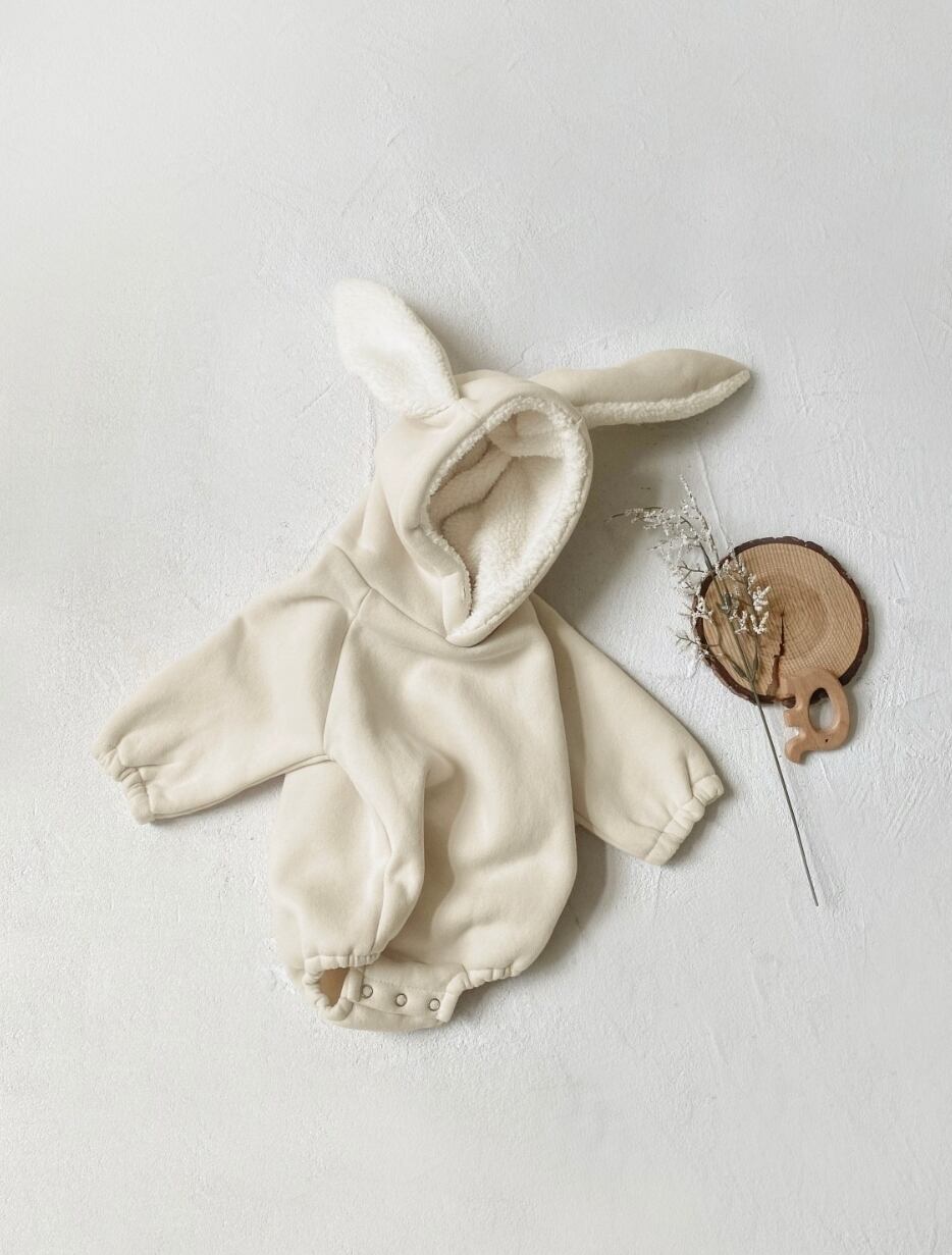 こちらは寒い季節にぴったりな、あったかロンパースです!柔らかい素材で、お肌にも優しく、赤ちゃんの快適さを最優先に考えたデザインとなっています。うさぎさんの可愛らしいデザインが心を癒してくれます♪