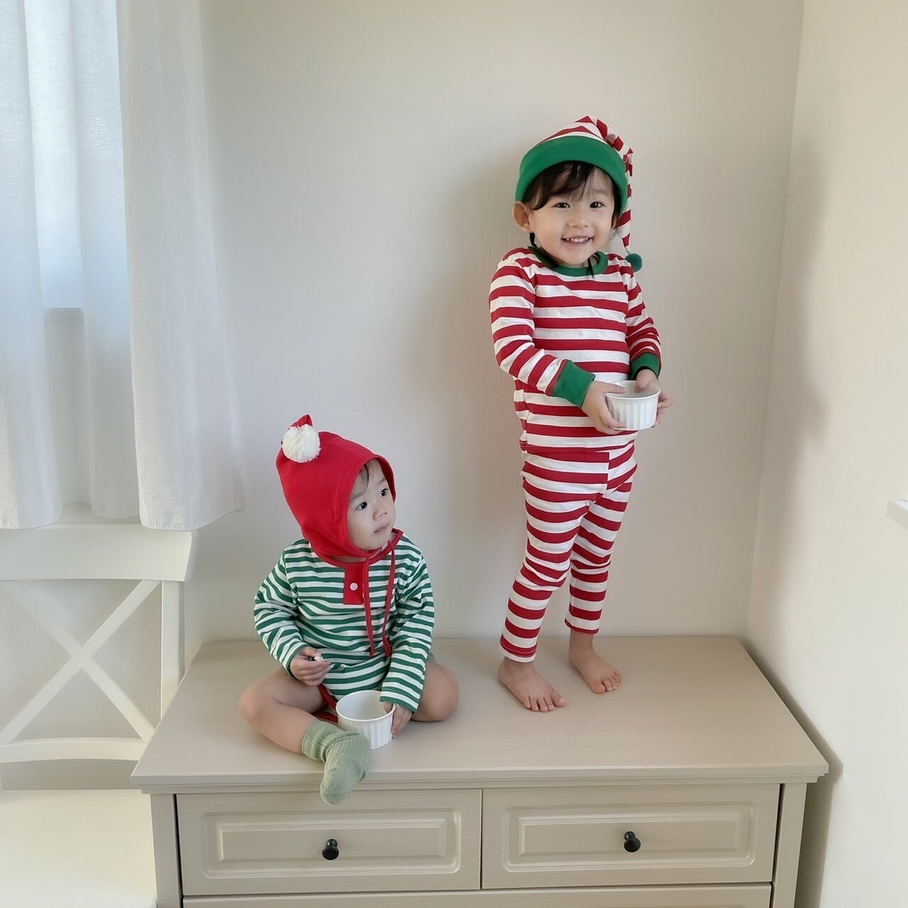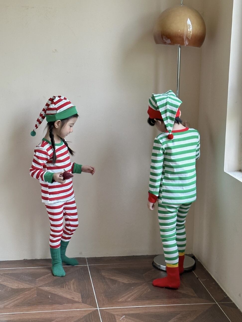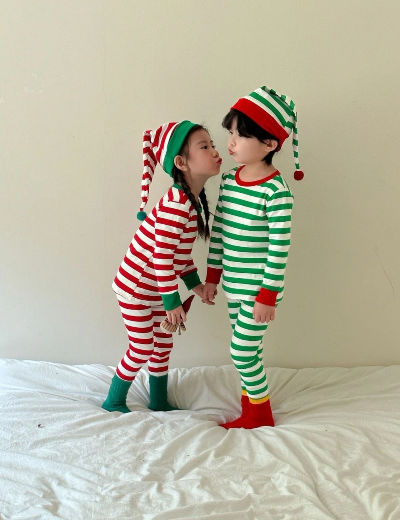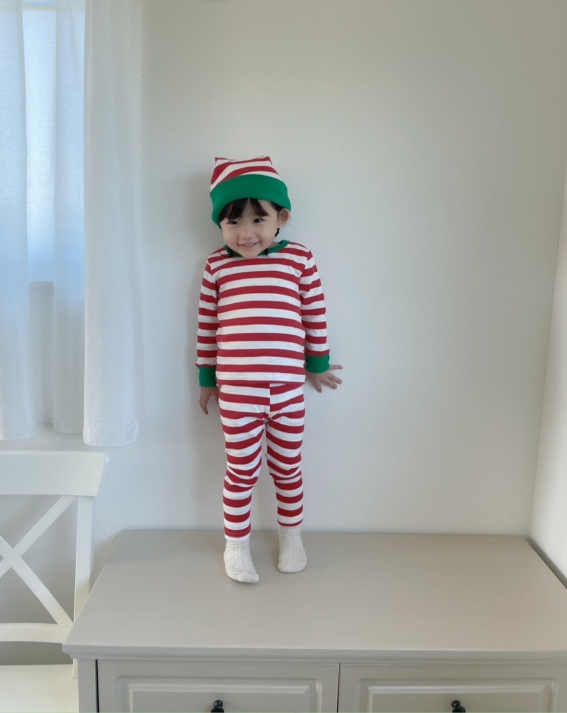 クリスマスシーズンにぴったりなボーダーセットアップが登場!おしゃれで可愛いリンクコーデが叶うアイテムです♡柔らかく伸縮性のある素材で、快適な着心地を実現。特別な日の思い出にふさわしい、見逃せない一着です♪