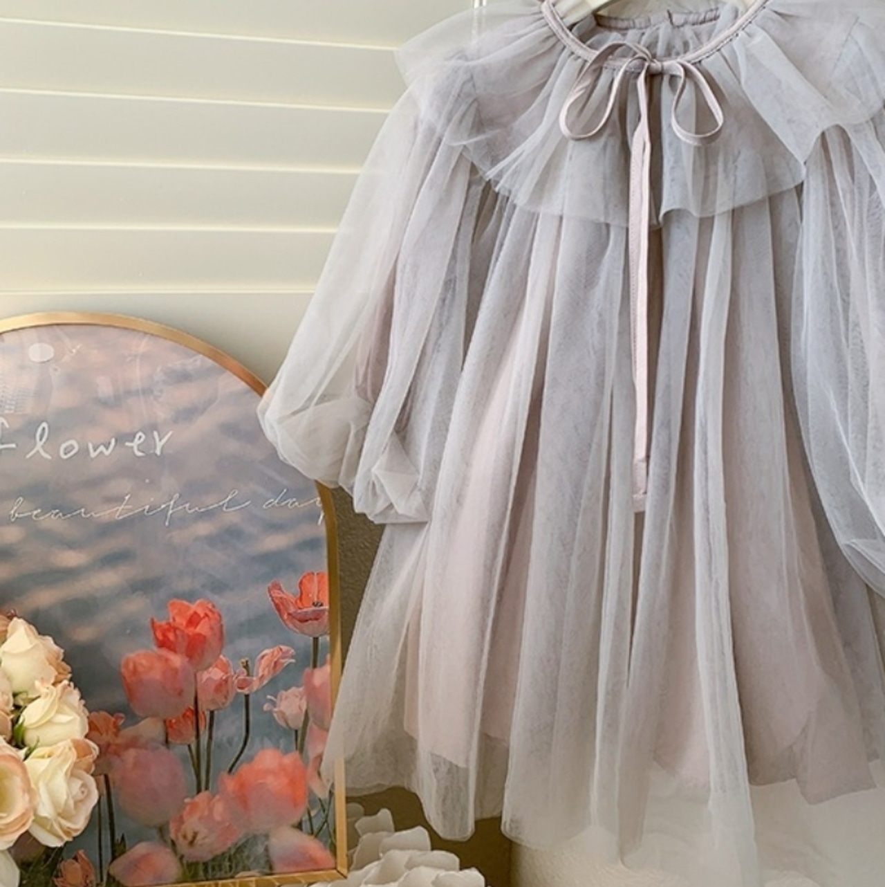 華やかなチュールドレスが登場です!軽やかなチュール素材が魅力的で、特別な日のお出かけやパーティーにぴったり♪女の子に大人気のデザインで、周りの視線を集めること間違いなしです!