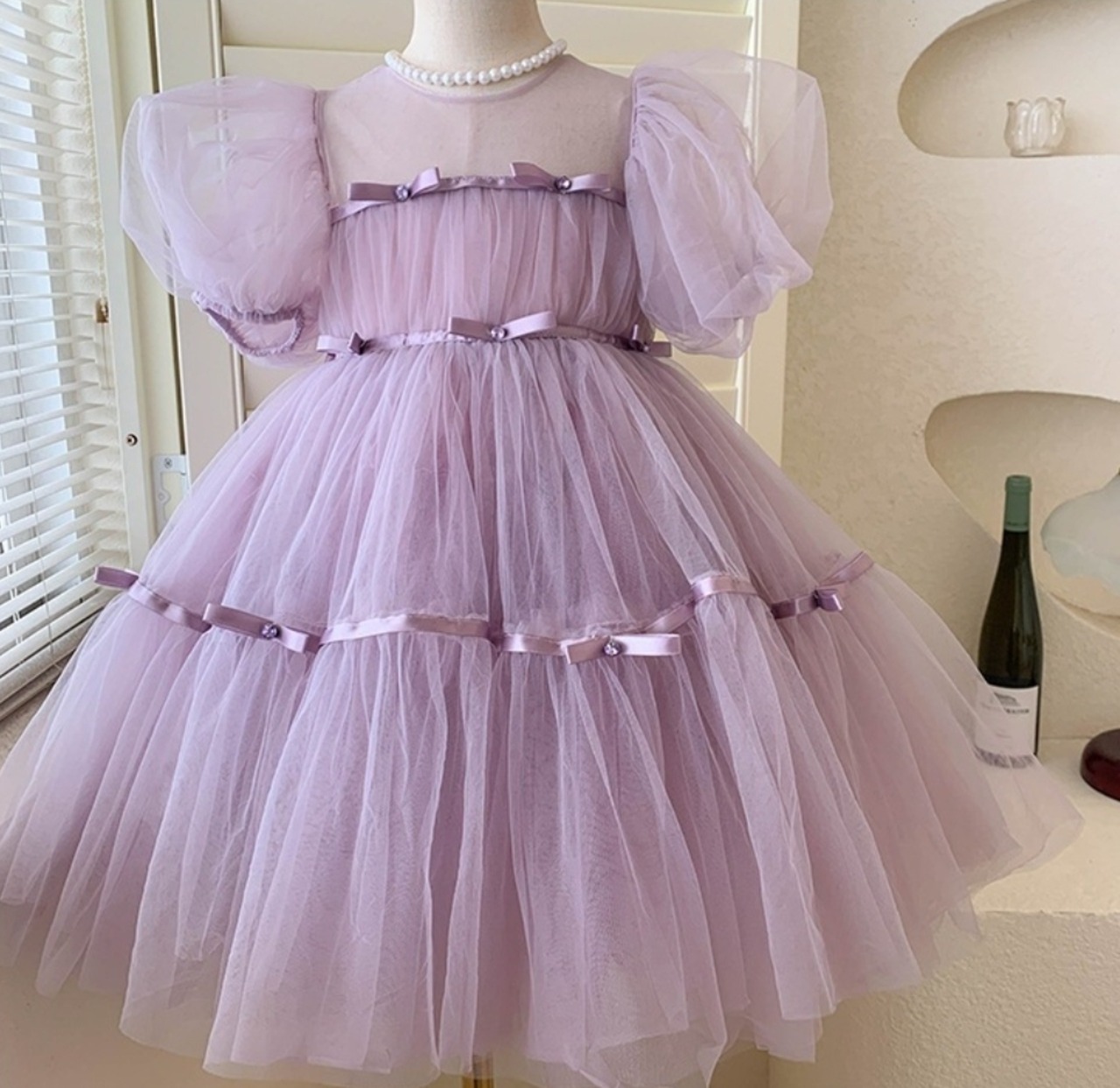 【予約】【90-150 】パープル レース チュールドレス ラプンツェル カラー