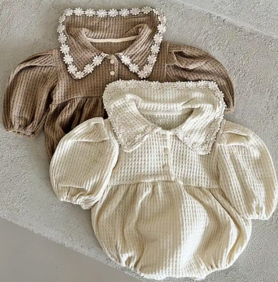 女の子の赤ちゃん服 レースワッフルジャンプスーツ