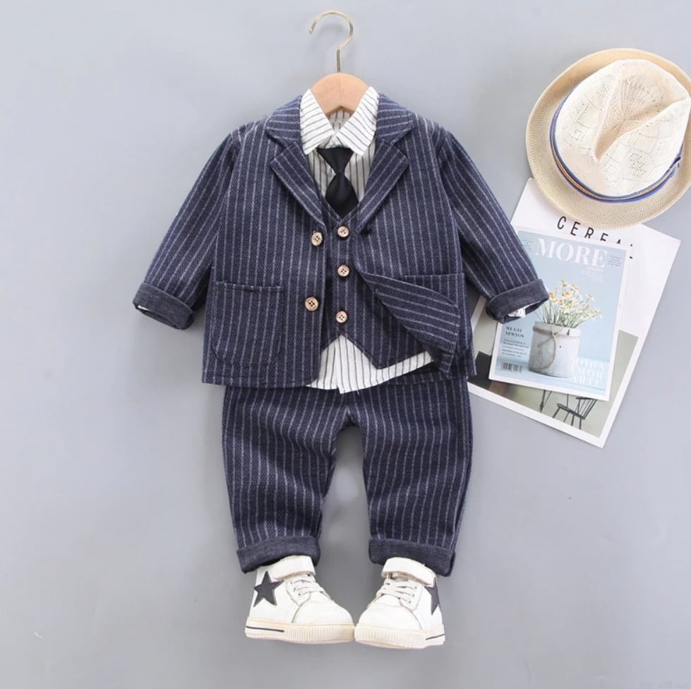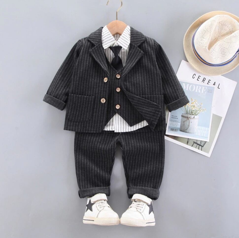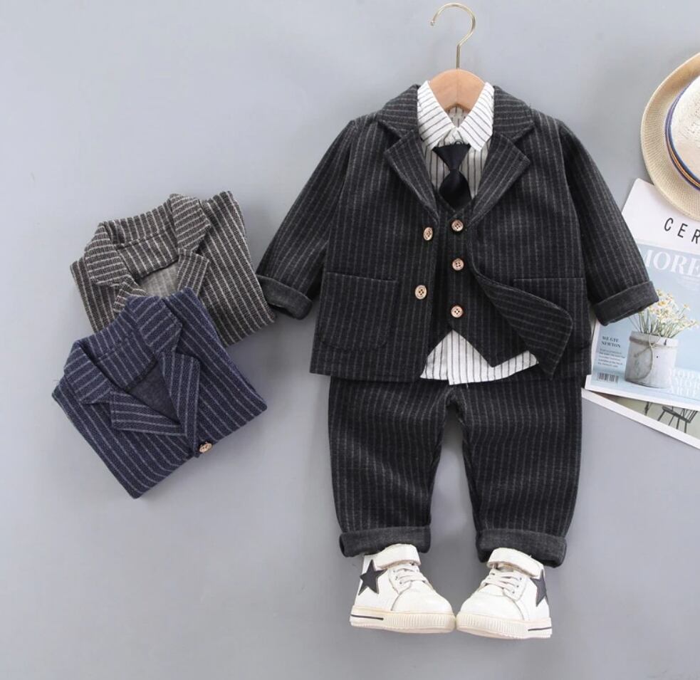 韓国版男の子ストライプシャツ長袖ネクタイスーツ