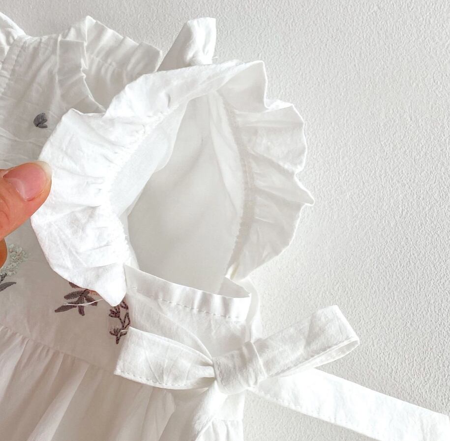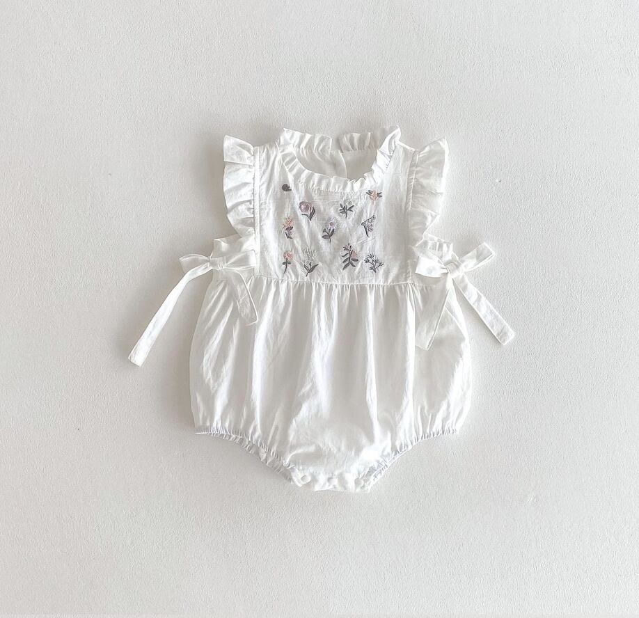 【予約】【66-90】サイドリボン フラワー刺繍 ロンパース pp
